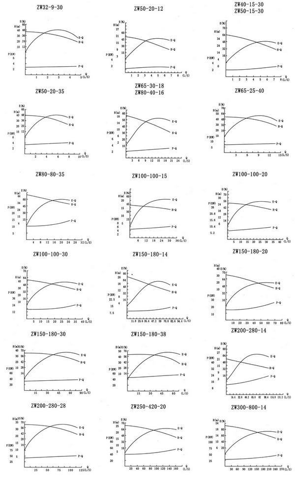 六、ZW型無(wú)堵塞污水自吸泵性能曲線圖