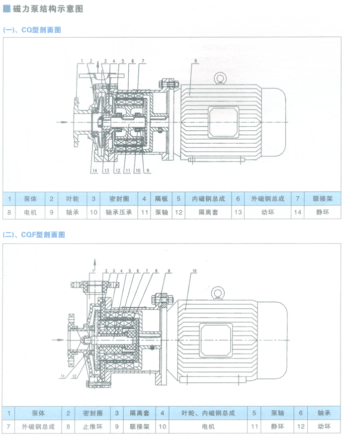 CQ型不銹鋼磁力驅動泵結構剖面圖