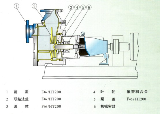 IHF襯氟離心泵按國(guó)家標(biāo)準(zhǔn)設(shè)計(jì);泵體采用先進(jìn)的生產(chǎn)工藝以金屬外殼緊襯氟塑料(F46)制造,泵的承重部分為金屬材料具有機(jī)械強(qiáng)度高、耐壓性強(qiáng)、抗機(jī)械沖擊力優(yōu)越等優(yōu)點(diǎn);主要過(guò)流部件葉輪、泵蓋等均采用金屬嵌件外包氟塑料一次性高溫模壓而成;配置外裝式金屬波紋管機(jī)械密封,對(duì)磨材質(zhì):氧化鋁VS四氟、碳化硅VS四氟、硬質(zhì)合金VS硬質(zhì)合金,用戶可根據(jù)工況要求選擇對(duì)磨付。