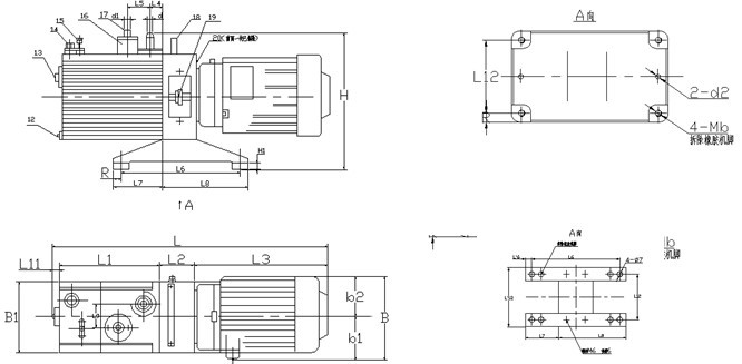 | 五、2XZ型旋片式真空泵的安裝尺寸表: |