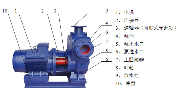 ZSL強(qiáng)自吸.高揚(yáng)程.大流量.直聯(lián)式雙吸自吸泵的水泵結(jié)構(gòu)圖