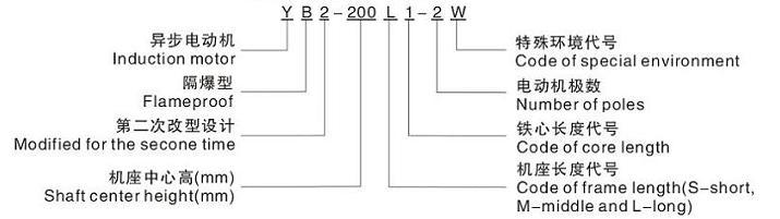 | YB2系列隔爆型三相異步電動機(機座號:63-315,極數(shù):2-8極,功率:0.12kW-200kW) |
