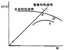 設(shè)計工作點為A,水泵流量為QA,揚程為HA.水泵實際運行時管路特性曲線不是Ⅰ,而是Ⅱ,運行工作點為B,流量QBA,且B點不在水泵高效區(qū). 顯然這比第一種情況更為不利.解決的唯一辦法只能更換水泵.