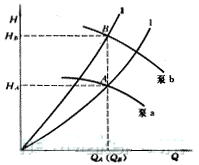 流量QA是系統(tǒng)設(shè)計流量,在此流量下水泵揚程為HB即可。實際選擇的水泵揚程為HS。為了保證QA,則要改變管路特性,即通過關(guān)小水泵進(jìn)出口的閥門,使管路特性曲線由Ⅰ變?yōu)棰?顯然,ΔP=HB-HA完全通過閥門節(jié)流, 這是非常不經(jīng)濟(jì)的,也是工程中需避免出現(xiàn)的情況,如果冬季運行采用同一套泵工作,由于流量變小,節(jié)流更嚴(yán)重,就更不經(jīng)濟(jì),甚至造成水泵工作點不穩(wěn)定[2].