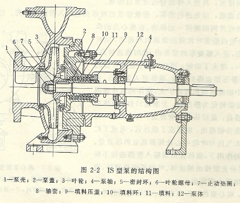 單級離心泵由于其用途的不同,有很多型號,它們的結(jié)構(gòu)也各不相同。在此,只介紹較常用的IS型和S型兩種單級離心泵的結(jié)構(gòu)。