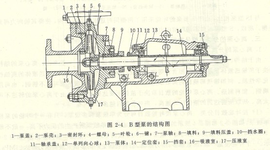 單級懸臂式離心泵有前開門式和后開門式兩種結(jié)構(gòu)。前開門式為葉輪前面為泵蓋,后面為泵殼;而后開門式與前開門式相反,葉輪前面為泵殼,后面為泵蓋。圖2-2所示的IS型泵的結(jié)構(gòu)為后開門式,圖2-4所示的B型泵的結(jié)構(gòu)為前開門式.