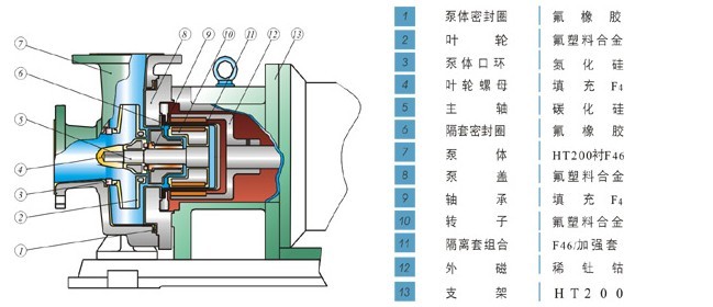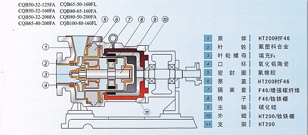 別名(襯氟磁力泵、氟合金磁力泵、臥式耐酸磁力泵、臥式耐酸磁力泵)
