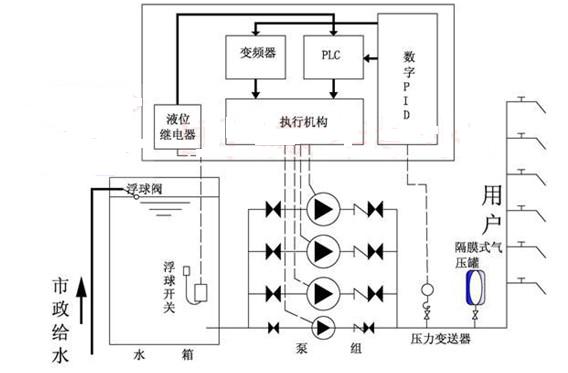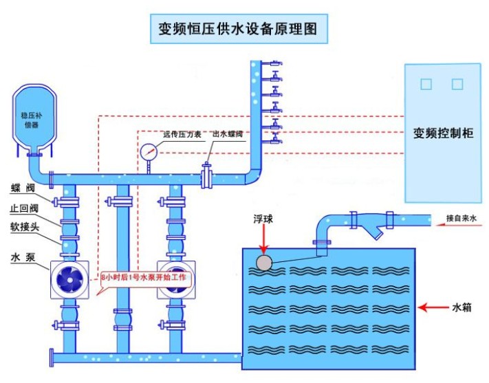 恒壓供水設(shè)備是指在供水網(wǎng)系中用水量發(fā)生變化時,出口壓力保持不變的供水方式。供水網(wǎng)系的出口壓力值是根據(jù)用戶需求確定的。傳統(tǒng)的恒壓供水方式是采用水塔、高水位箱、氣壓罐等設(shè)施實(shí)現(xiàn)的。