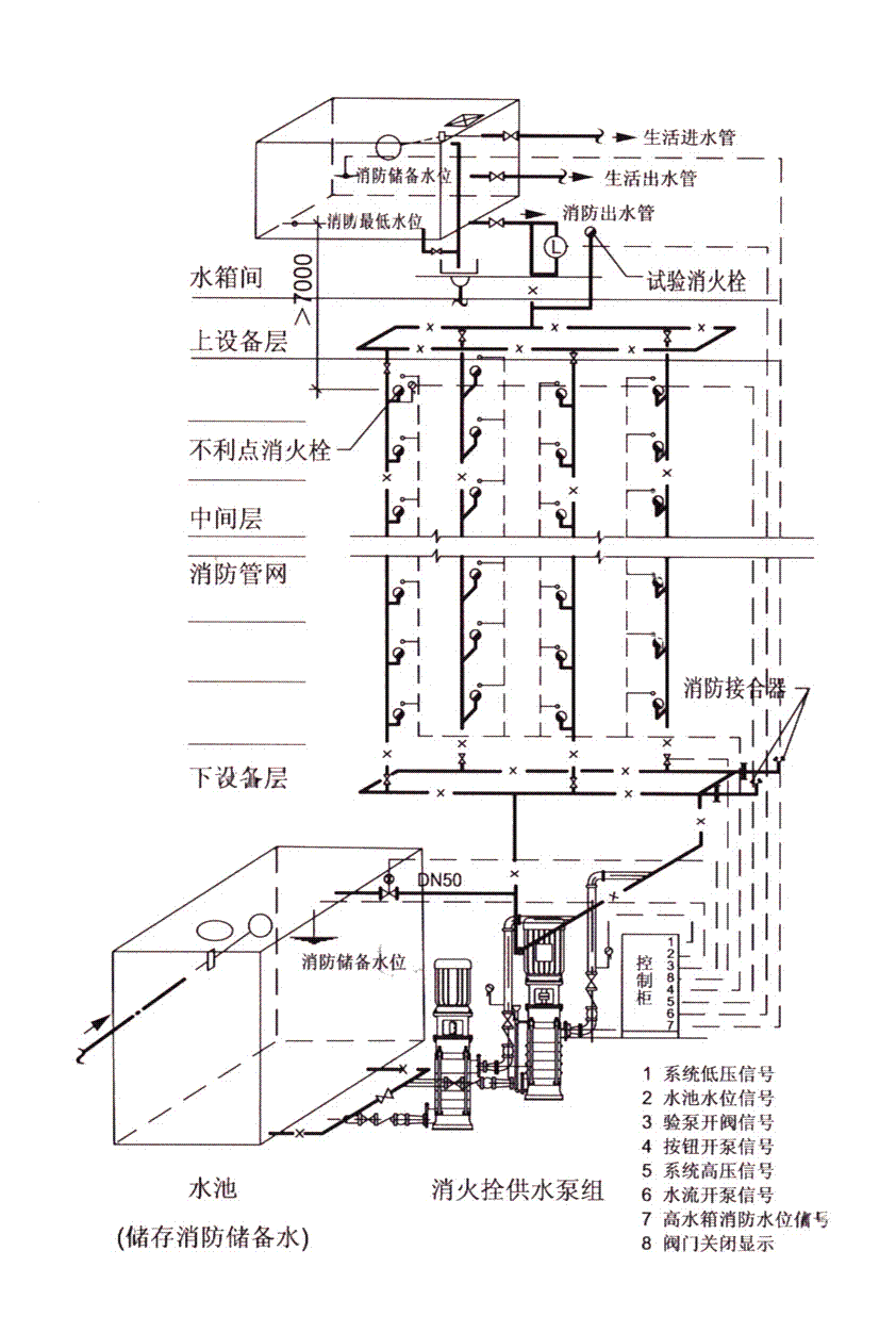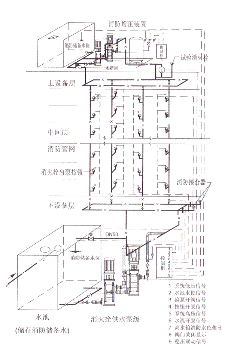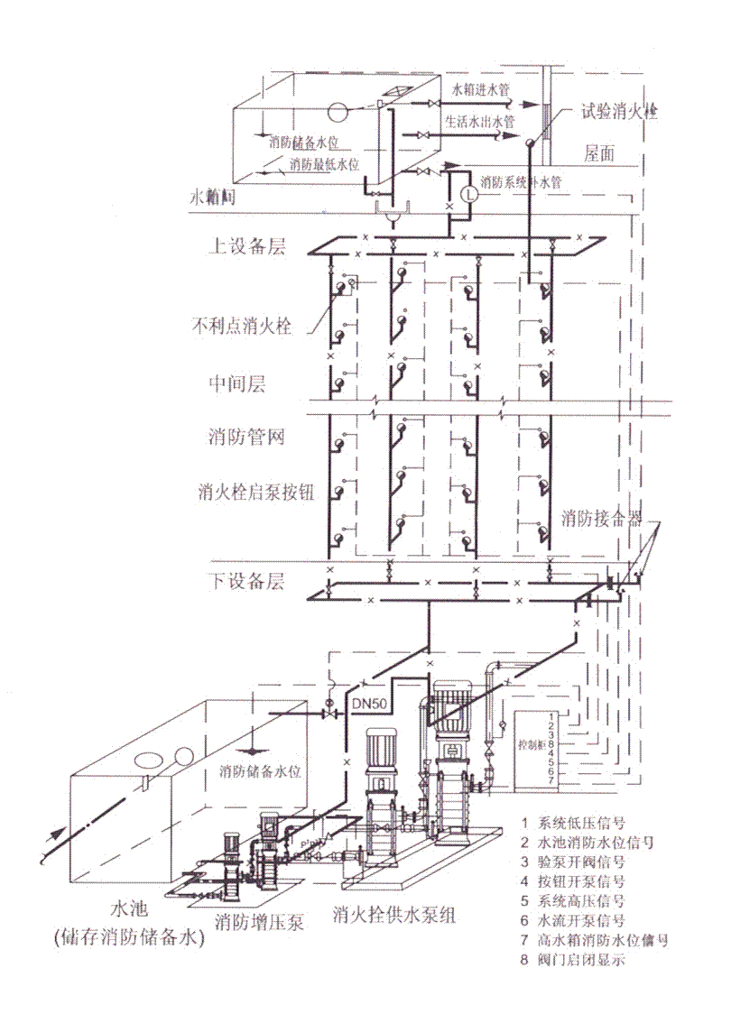 水箱穩(wěn)壓消火栓系統(tǒng)原理圖