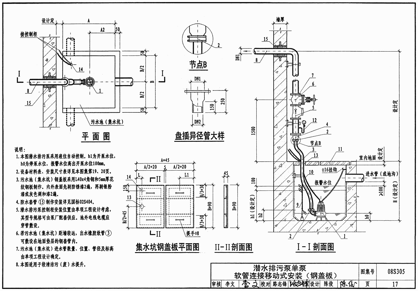 潛水排污泵單泵軟管連接移動式安裝示意圖