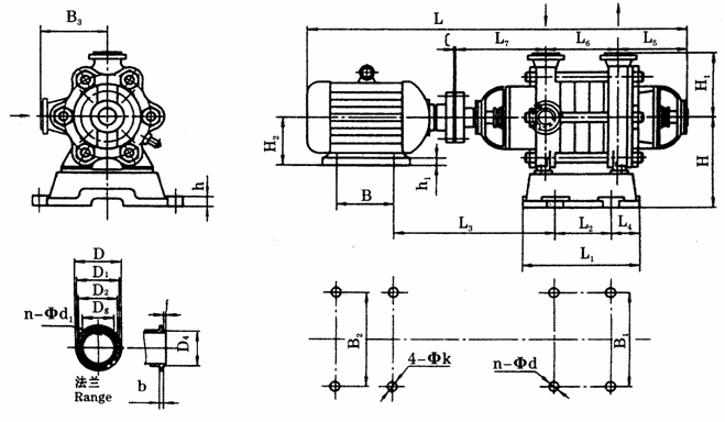 | 泵型號 | 進(jìn)口法蘭尺寸 Size of Inlet Flange | ||||||
