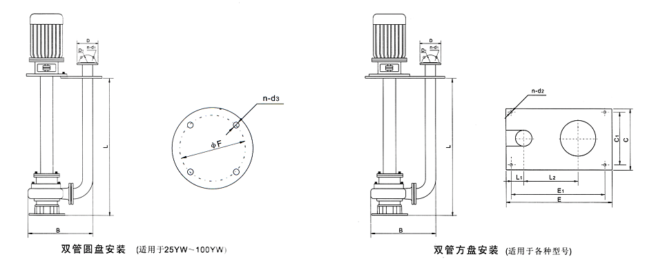 9.泵有單管安裝和雙管安裝兩種,支承件有圓盤和方盤安裝。