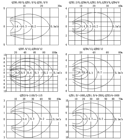九、QJB型不銹鋼潛水?dāng)嚢铏C的流速圖:
