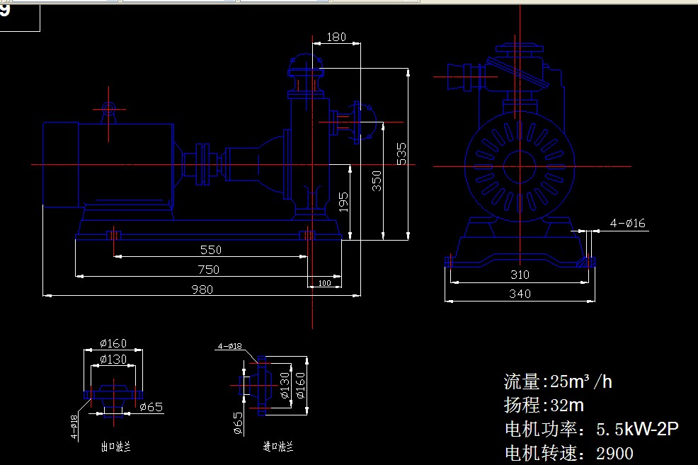 65CYZ-A-32防爆自吸式離心油泵安裝尺寸圖