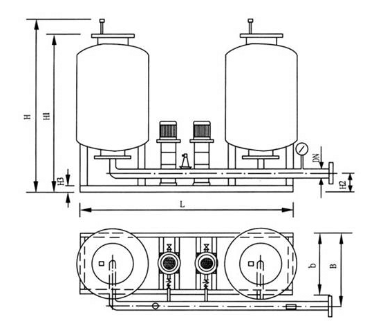 氣室按工藝設(shè)計(jì)充入預(yù)壓所需的氮?dú),裝置連接系統(tǒng),安裝完畢,打開(kāi)本裝置與系統(tǒng)之間的閥門(mén)。當(dāng)系統(tǒng)水溫的變化引起水的容積膨脹或者收縮時(shí),由隔膜罐自行予以吸入或吐出,使系統(tǒng)壓力穩(wěn)定在予先設(shè)定的壓力上下限的區(qū)域里。如果系統(tǒng)由于漏水或其它原因引起壓力下降至予設(shè)壓力的下限時(shí),由電接點(diǎn)壓力繼電器動(dòng)作啟動(dòng)穩(wěn)壓泵,使之向系統(tǒng)供水,直至壓力達(dá)到所設(shè)定的壓力上限值時(shí)止。若系統(tǒng)壓力超過(guò)設(shè)定的高壓力值時(shí),安全閥自行向軟水箱或地溝泄水降壓,如此反復(fù),以維持系統(tǒng)的壓力平衡。