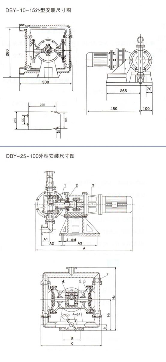 DBY型鋁合金電動(dòng)隔膜泵性能材質(zhì)表