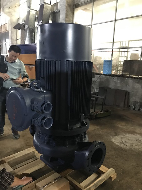 ISG200-500(I)配132KW-4江蘇大中防爆電機丹東克隆機封定制立式管道離心泵出廠 流量400立方 揚程80米 進出口徑200MM 電壓380V 50HZ 客戶到廠驗收后,發(fā)貨.