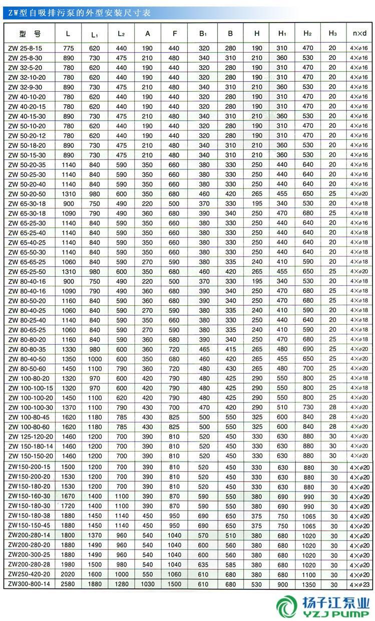 ZW型自吸式無堵塞排污泵(安裝尺寸)
