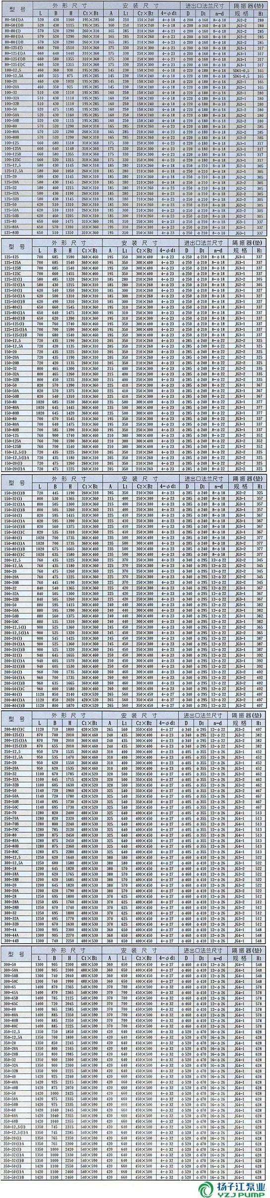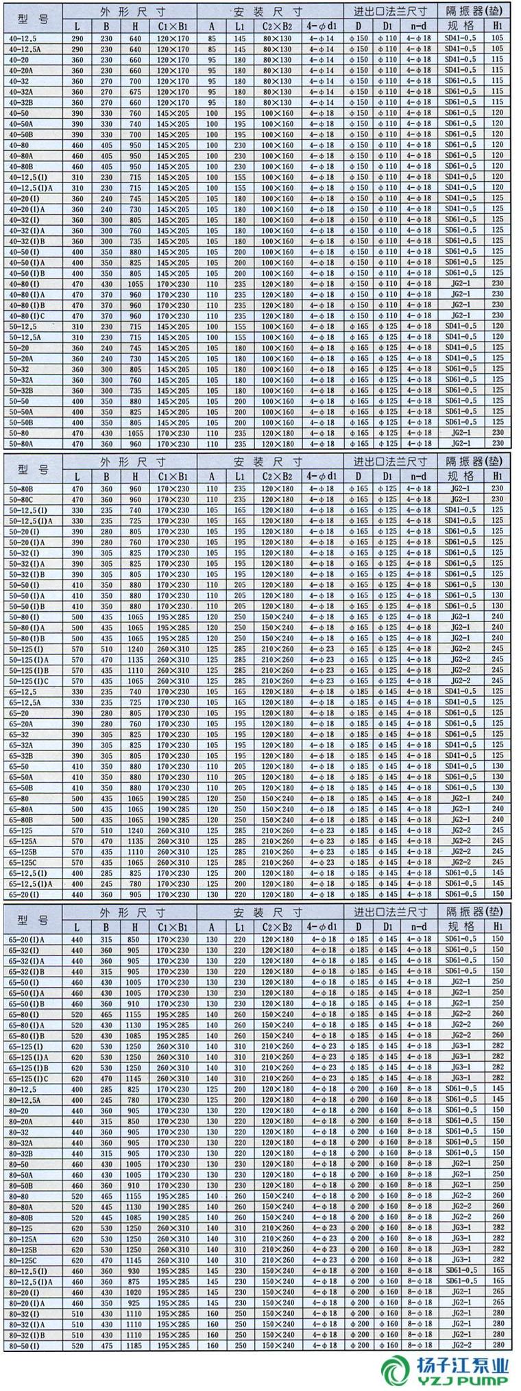 ISGB型便拆立式管道離心泵安裝尺寸表: