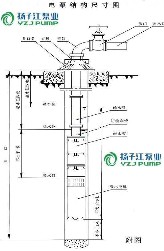 1.QJ型潛水電泵機組由:水泵、潛水電機(包括電纜)、輸水管和控制開關(guān)四大部分組成。潛水泵為單吸多級立式離心泵:潛水電機為密閉充水濕式、立式三相鼠籠異歩電動機,電機與水泵通過爪式或中.鍵筒式聯(lián)軸器直接;配備有不同規(guī)格的三芯電纜:起動設(shè)備為不同容量等級的空氣開關(guān)和自耦減壓起動器、輸水管為不同直徑的鋼管制成,采用法蘭聯(lián)接,高揚程電泵釆用閘閥控制。