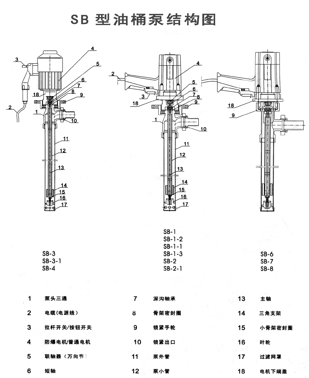 SB型電動(dòng)油桶泵結(jié)構(gòu)圖: