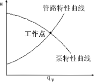 在泵葉輪轉(zhuǎn)速一定時(shí),一臺(tái)泵在具體操作條件下所提供的液體流量和壓頭可用qV-H曲線上的一點(diǎn)來表示。至于這一點(diǎn)的具體位置,應(yīng)視泵前后的管路情況而定,討論泵的工作情況,不應(yīng)脫離管路的具體情況。 |