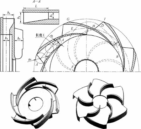 圖9-17正導(dǎo)葉螺旋線(xiàn)部分和擴(kuò)散段的設(shè)計(jì)