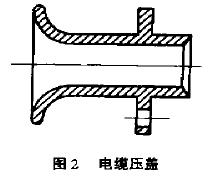 在潛水排污泵的使用過程中,經(jīng)常會(huì)發(fā)現(xiàn)電纜處發(fā)生泄猾 其主要原因有兩卡:一是電纜與電機(jī)上蓋之間的密封采用密封件(橡膠塊、彈簧片)壓緊而成.密封件與電纜外皮之間有時(shí)壓得不夠嚴(yán)密, 產(chǎn)生泄漏;二是從電機(jī)出來的一小段電纜由于在使用或搬運(yùn)過程中過度彎曲,電纜外皮根容易產(chǎn)生龜裂,發(fā)生泄漏 針對(duì)此因素,可以對(duì)電纜進(jìn)行特殊的處理.在電纜上壓鑄如圖1所示的能起到密封效果的護(hù)套.由于是壓鑄而成,護(hù)套與電纜之間貼合十分緊密而不會(huì)發(fā)生泄漏 為了防止電纜發(fā)生龜裂.把電纜壓蓋做皎如圖2形狀.使電纜不致于因過度彎曲而龜裂。