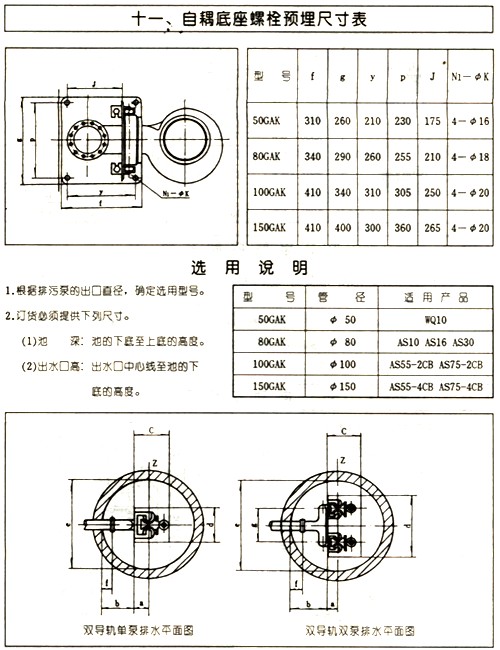 自動(dòng)安裝系統(tǒng)是為as排污泵固定安裝所提供的主要裝置,包括雙導(dǎo)軌單泵和雙導(dǎo)軌雙泵導(dǎo)向自動(dòng)耦合機(jī)構(gòu),它將給as排污泵的安裝與維修帶來(lái)的巨大的方便,此外,可根據(jù)用戶的需要提供浮球開(kāi)關(guān),能有效地保證排污泵根據(jù)需要的水位變化啟動(dòng)與停止,不需專人看管,它與潛水排污泵相配合,實(shí)現(xiàn)了潛水排污泵的安裝、維修和控制較高的自動(dòng)程度,提高了產(chǎn)品的安全性和可靠性,主要用于污染嚴(yán)重的排水坑,以及固定安裝的排水站。