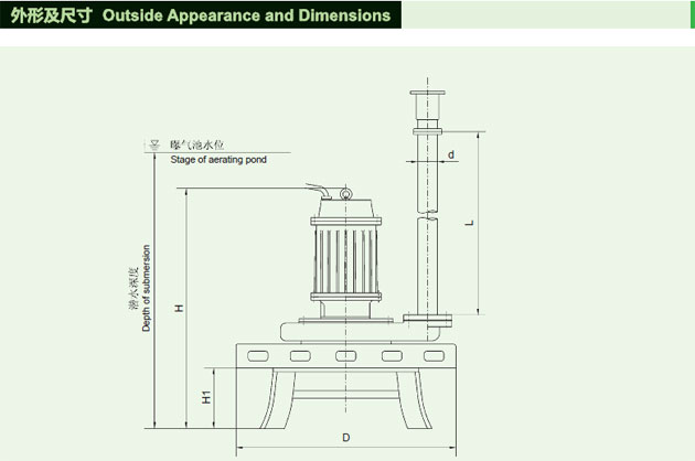 3、機體沉入水中運行,無噪音。進氣管出水面可加裝消音器,增強消音效果。