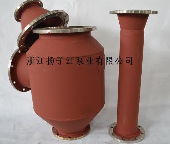 W型水力噴射器結(jié)構(gòu)比較簡單,沒有機械傳動裝置,噪音小,使用維修方便,配套設(shè)備采用多級泵低水位供水,其工作性能比較穩(wěn)定。水力噴射器的材料采用鑄鐵、不繡鋼等,用于真空蒸發(fā)系統(tǒng),如:化工、制藥、食品等部門對真空抽水、真空過濾、真空結(jié)晶、干燥、脫臭等工藝的場合使用。