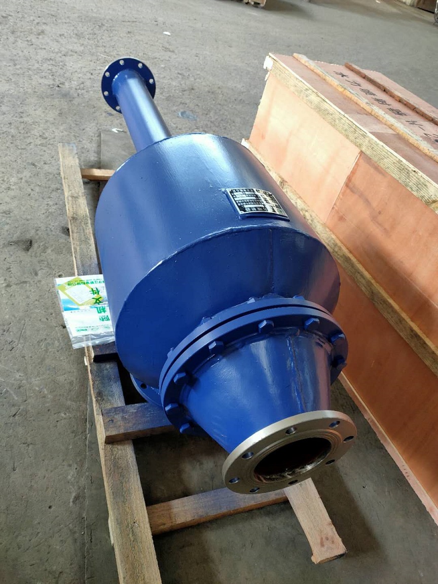 水力噴射器是一種具有抽真空、冷凝、排水等功能的機械裝置。它是利用一定的水壓,通過對稱和固定側(cè)斜度的噴俎,使水流會聚在同一個焦點上,由于噴射水流的流度速度高,于是在水柱周圍形成一定的負壓,使器室內(nèi)產(chǎn)生真空,另外由于二次蒸氣與噴射水流的直接接觸,進行熱交換,絕大部分的蒸氣都被凝結(jié)成水,少量未被冷凝的蒸氣和氣體,由于與噴射水流的相互磨擦,混合與擠壓,都通過擴壓關(guān)被排出,這時器室內(nèi)形成更高的真空。