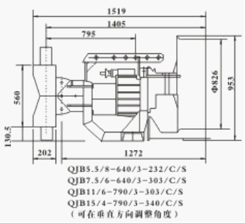 2、安裝系統(tǒng)I只適用于池深<4m,機型為QJBO.85/8和QJBl.5/6,且可在水平方向和垂直方向調(diào)節(jié)角度;當(dāng)池深>4m時,應(yīng)選用安裝系統(tǒng)II型。