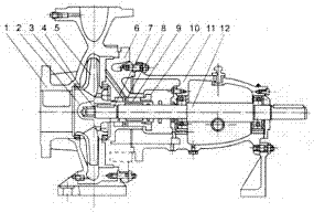 機(jī)械密封:單端面機(jī)械密封和雙端面機(jī)械密封兩種型式,密封腔內(nèi)通入一定壓力的水,沖洗磨擦兩端面,同時(shí)起冷卻作用。