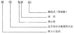 4、性能范圍與型號說明:FSB型和FSB.L型系列耐腐蝕泵,全系列共19個規(guī)格。流量范圍1.5.loom3/時,揚程范圍10.50m。