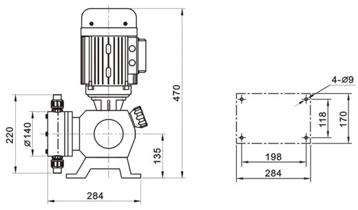 泵頭SUS304, SUS316, PVC, PTFE隔膜: PTFE