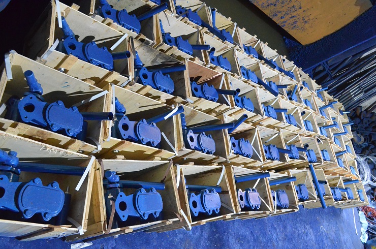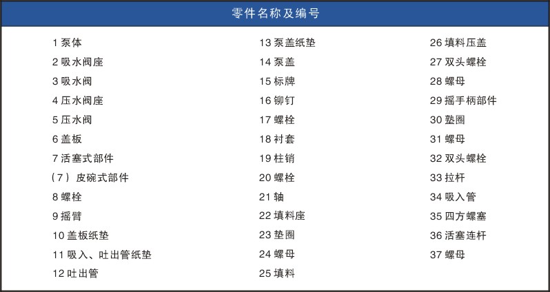 每臺(tái)水搖泵有四只水閥,即吸水閥及壓水閥各二只,都裝在泵體上,只要拆除蓋板螺母,就可取出(參看水閥示圖)。