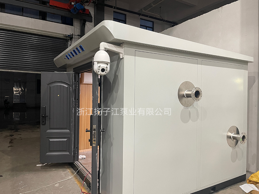 泵房主要由數(shù)字集成全變頻供水設(shè)備、管閥系統(tǒng)、網(wǎng)絡(luò)通信系統(tǒng)、視頻監(jiān)控系統(tǒng)、門禁安防系統(tǒng)、通風(fēng)除濕系統(tǒng)、降噪減震系統(tǒng)、保溫隔熱系統(tǒng)等部分組成。充分考慮戶外、防雨、隔熱、降噪、安防等因素進(jìn)行系統(tǒng)化設(shè)計(jì)和開發(fā),并借助現(xiàn)在的物聯(lián)網(wǎng)技術(shù)可以實(shí)現(xiàn)設(shè)備的遠(yuǎn)程監(jiān)控和智能運(yùn)維。