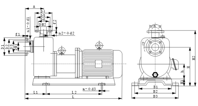 ZCQ型自吸式磁力泵安裝尺寸圖