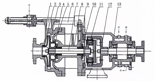 6、泵運(yùn)行1500小時(shí)后,應(yīng)拆檢軸承和端面動(dòng)環(huán)的磨損情況,并更換不宜再用的易損件。
