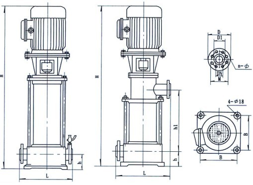 GDL系列立式多級(jí)管道離心泵安裝尺寸圖