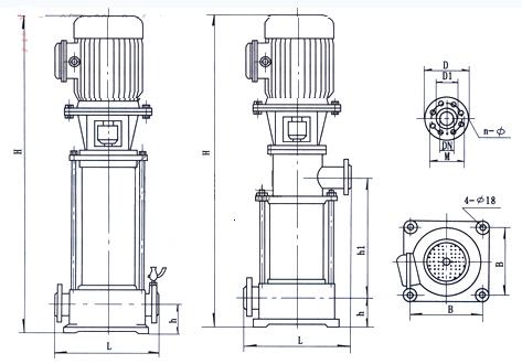 GDLF型立式不銹鋼多級(jí)離心泵安裝尺寸圖